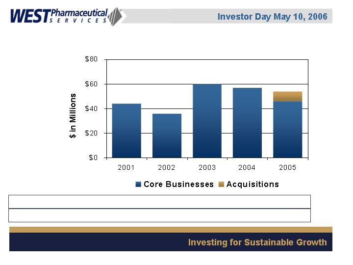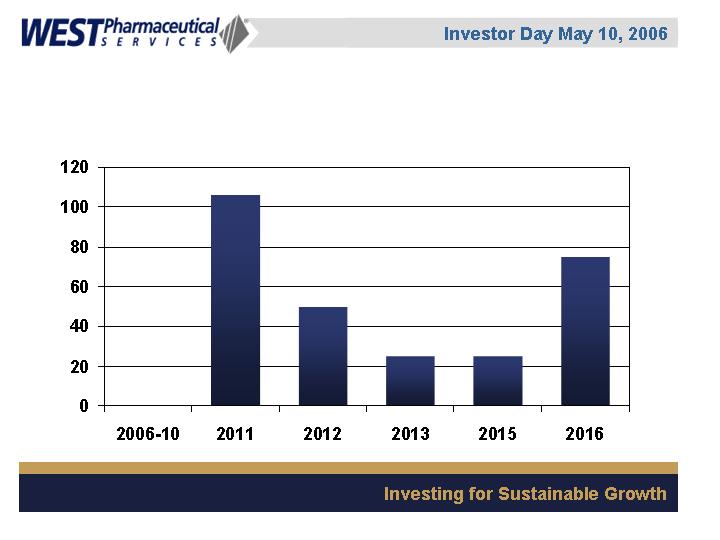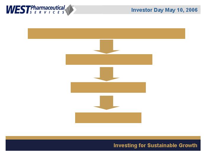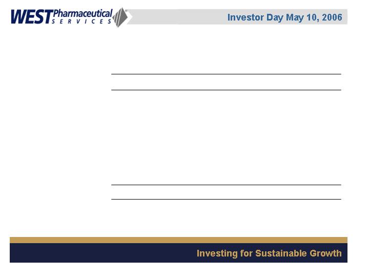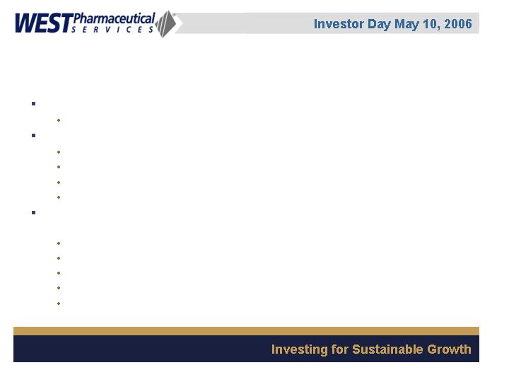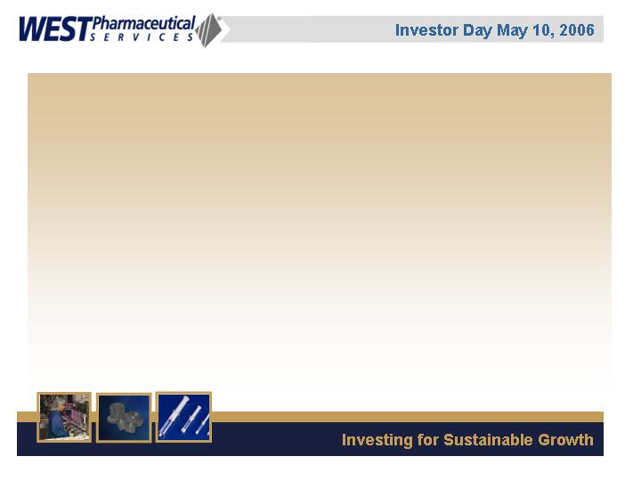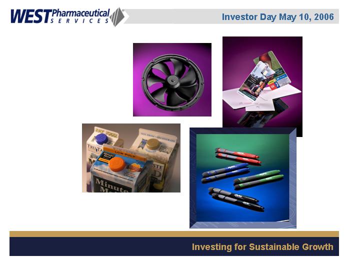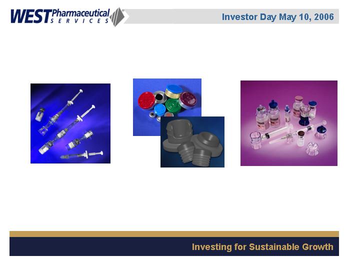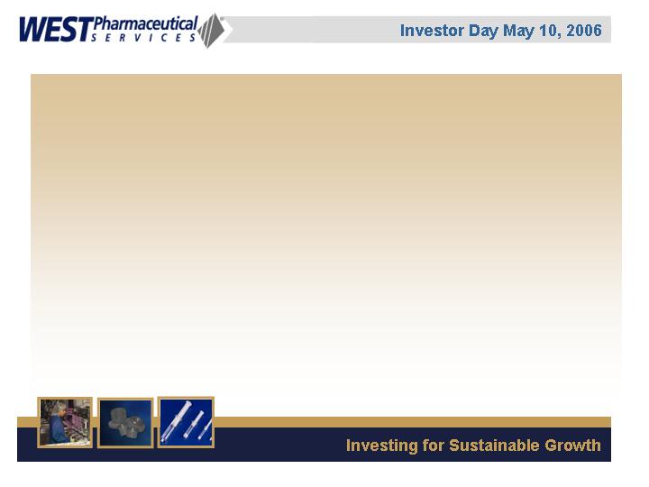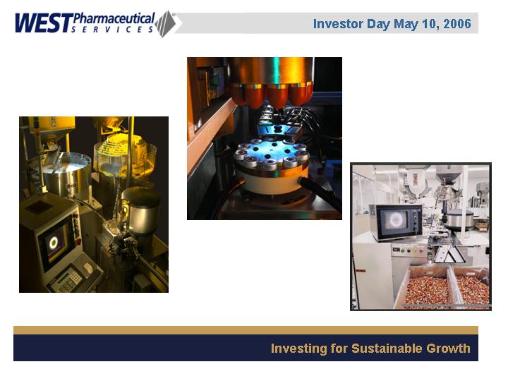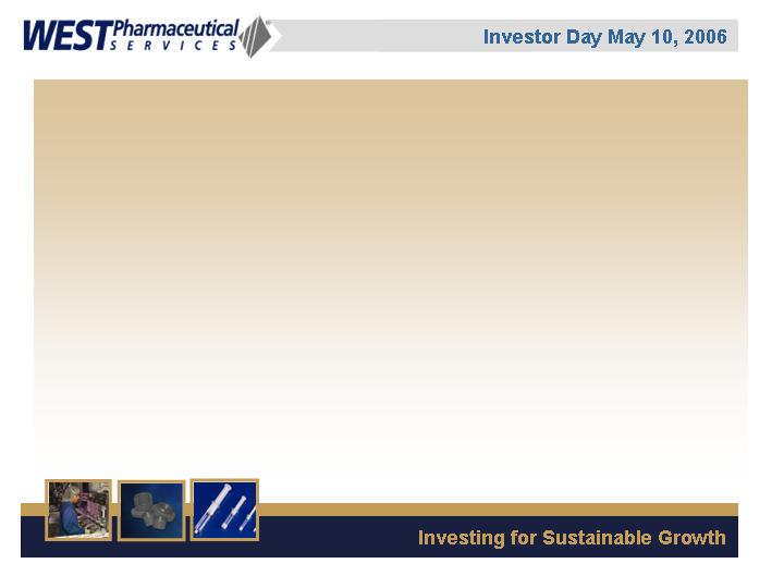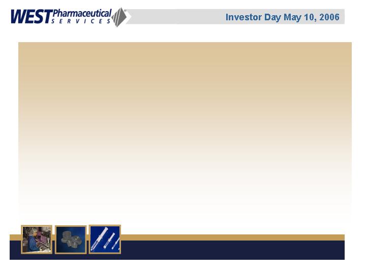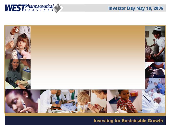 LIONVILLE, Pa., May 5 /PRNewswire-FirstCall/ -- West Pharmaceutical Services, Inc. (NYSE: WST), the global market leader in closure systems and syringe components for use with injectable drugs, announced today that it will conduct a live webcast of its Investor Day event on Wednesday, May 10, 2006 from 1:00 p.m. to approximately 3:00 p.m. EDT. The event will be held at the Grand Hyatt Hotel in New York, New York.