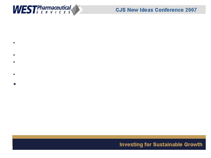 Donald E. Morel, Jr. Ph.D., the Companys Chairman and Chief Executive Officer, and William J. Federici, Chief Financial Officer will present at an investor conference being sponsored by CJS Securities on Thursday, January 11, 2007. A copy of the presentation can be found in the Investor section of the Companys website, www.westpharma.com.