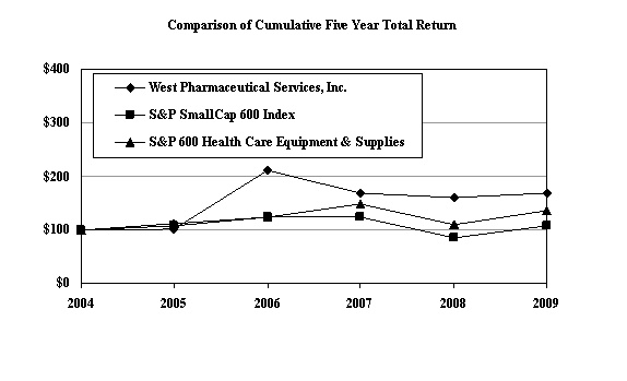 We hereby consent to the incorporation by reference in the Registration Statement on Forms S-3 (Registration Nos. 333-128438, 333-88358,333-133863, 333-141130 and 333-145186) and Forms S-8 (Registration Nos. 333-106977,333-115175, 333-143129, 333-143437 and 333-156492) of West Pharmaceutical Services, Inc. of our report dated February 25,